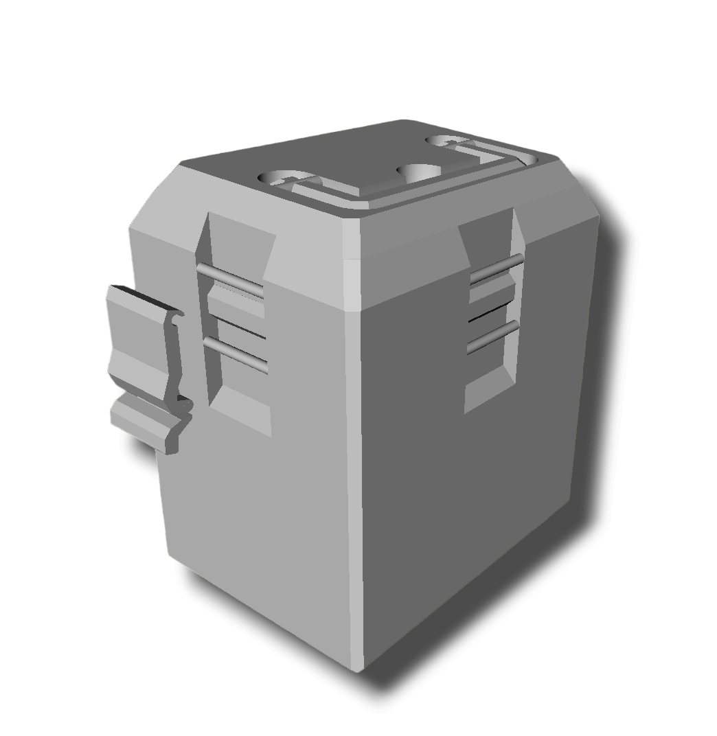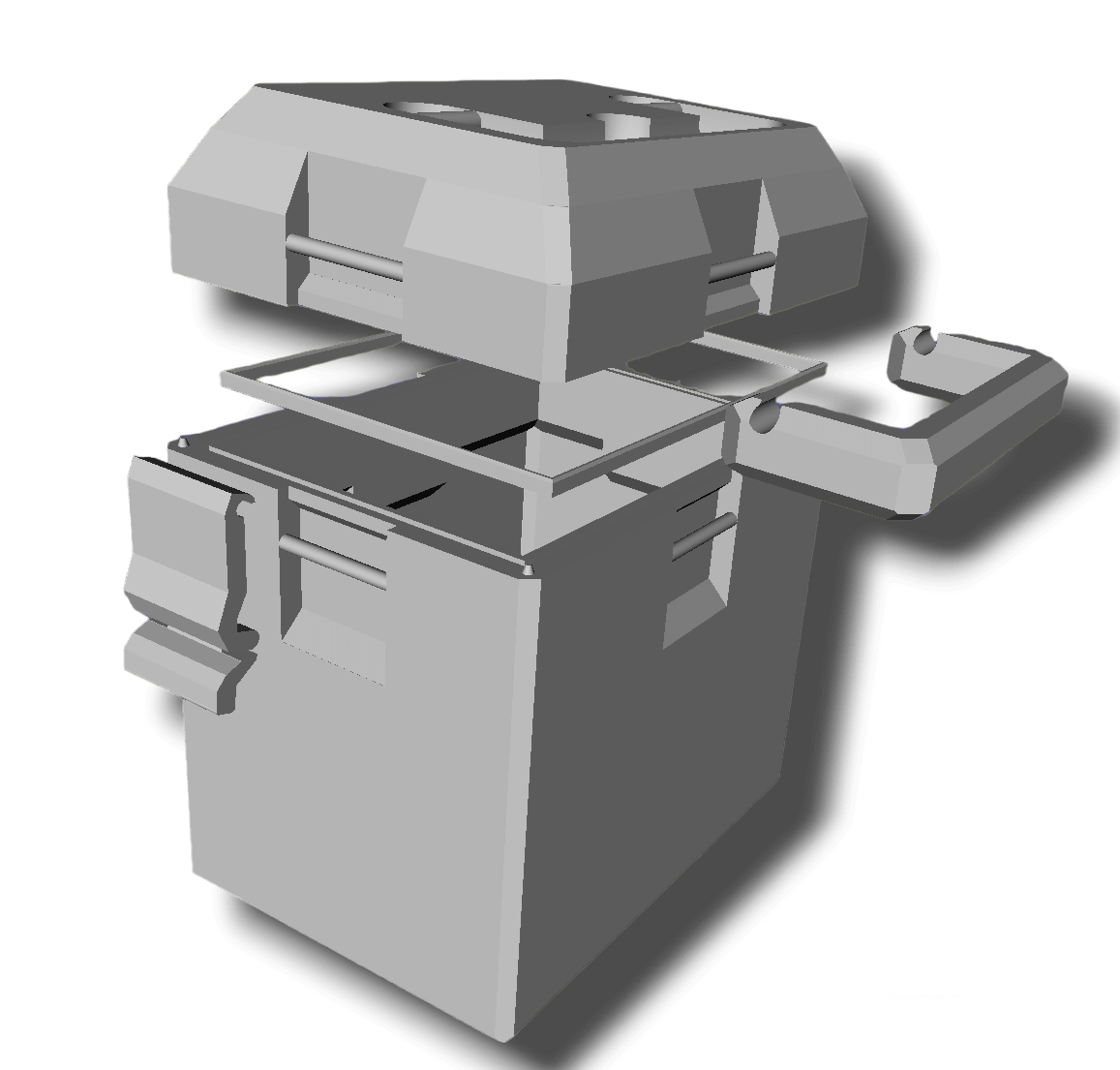 Voidaan tulostaa minimaalisilla tuilla, vain pienempi salpaosa (tulostettu sivuttain) ja laatikon salpakiinnitystangot